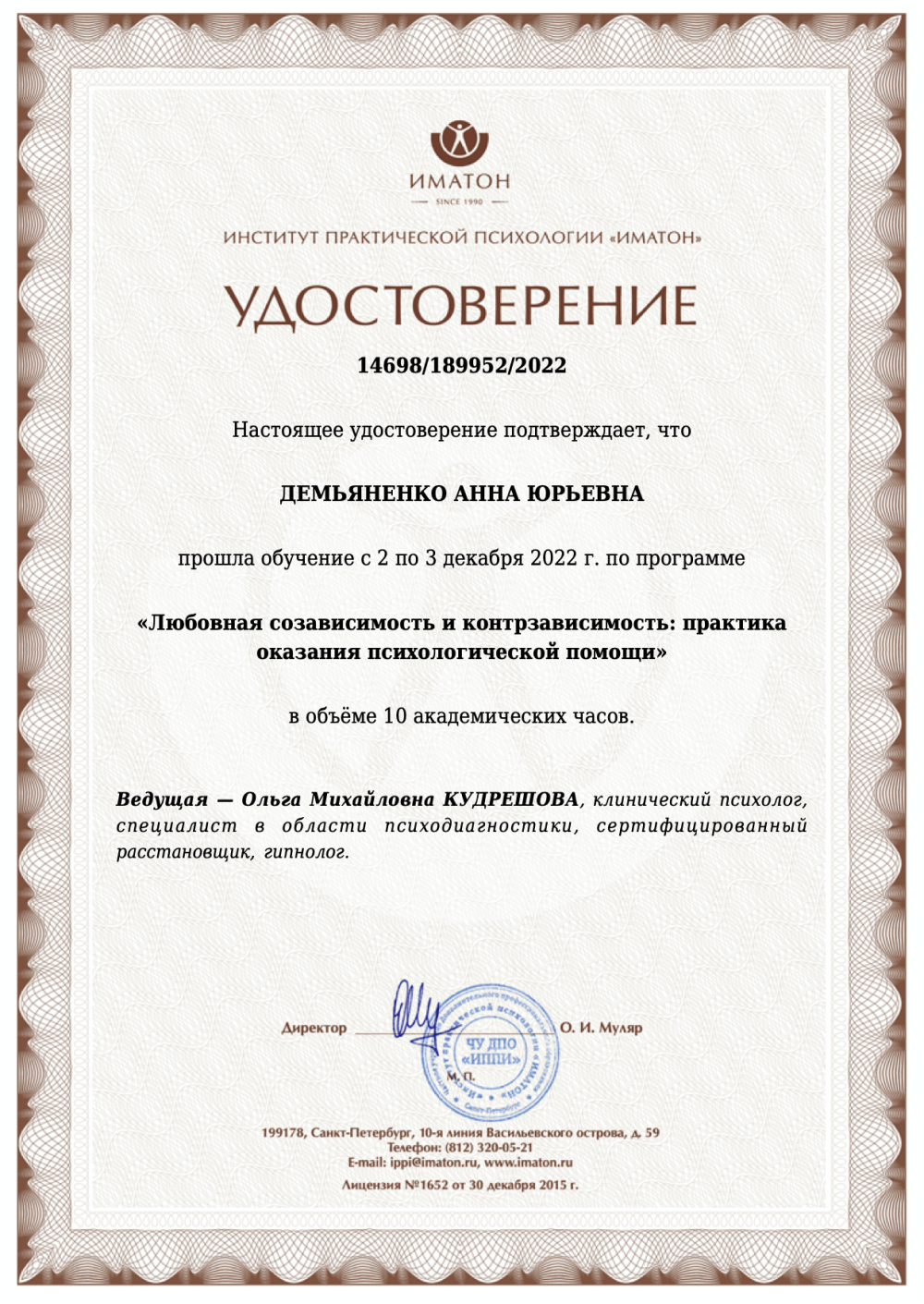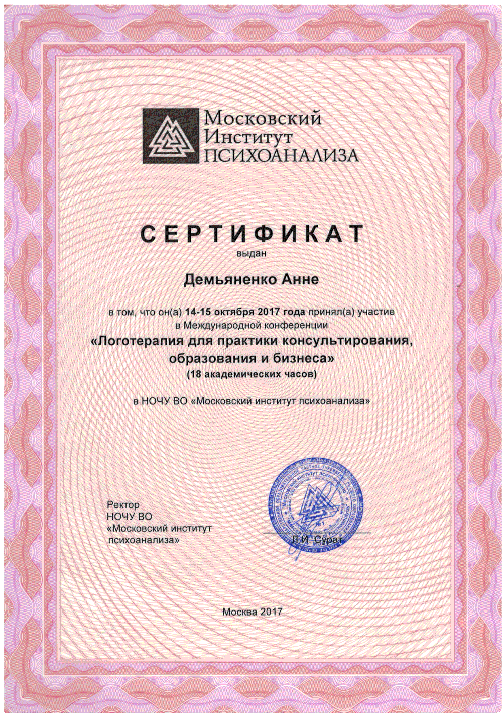 Обратилась за помощью к психологу-логотерапевту Анне Юрьевне. Мой запрос состоял в том, чтобы наладить отношения с отцом и сыном. Постоянные ссоры с близкими мне людьми гложили и угнетали меня. Ситуация казалась мне безвыходной. Но оказывается выход есть всегда!!! Анна Юрьевна уже с первого сеанса помогла мне разобраться и понять, что все решаемо. И я наконец увидела выход со сложившейся ситуации. Хочу выразить огромную благодарность Анне Юрьевне!! Уверенно могу рекомендовать Анну Юрьевну как специалиста, который обязательно поможет вам.