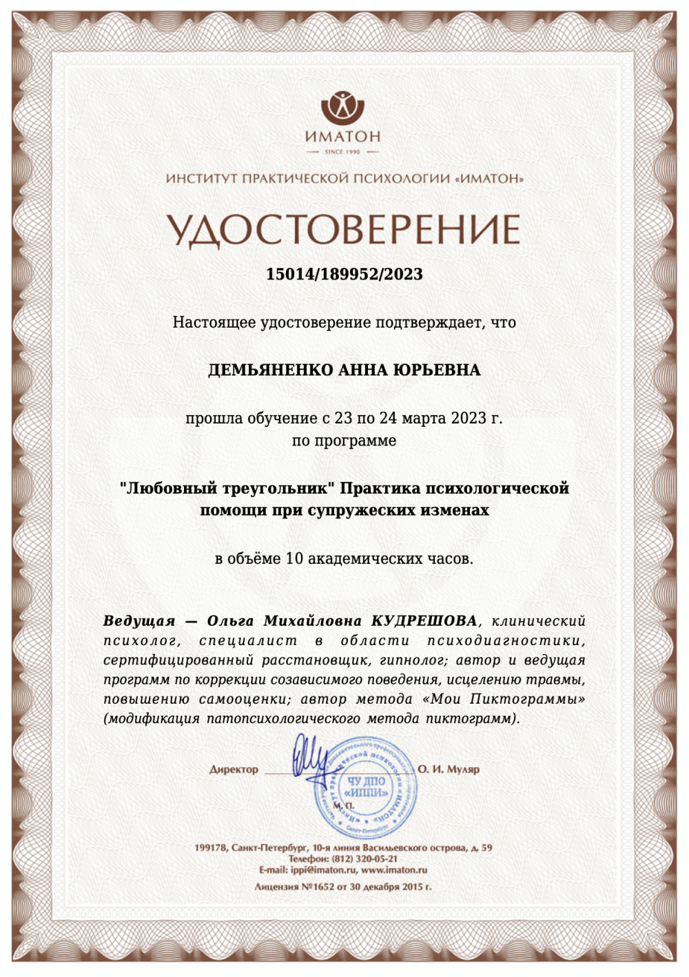 После нескольких сессий могу сказать об Анне просто – у нее есть талант тонко чувствовать и видеть каким то внутренним зрением то, что происходит у человека в душе.. Были ситуации, когда порой тяжело было описать свои переживания, но я всегда был понят даже с полуслова. Тонкость и деликатность, структурированность в своих пояснениях – это то, что выделяет ее сильные стороны в том числе.